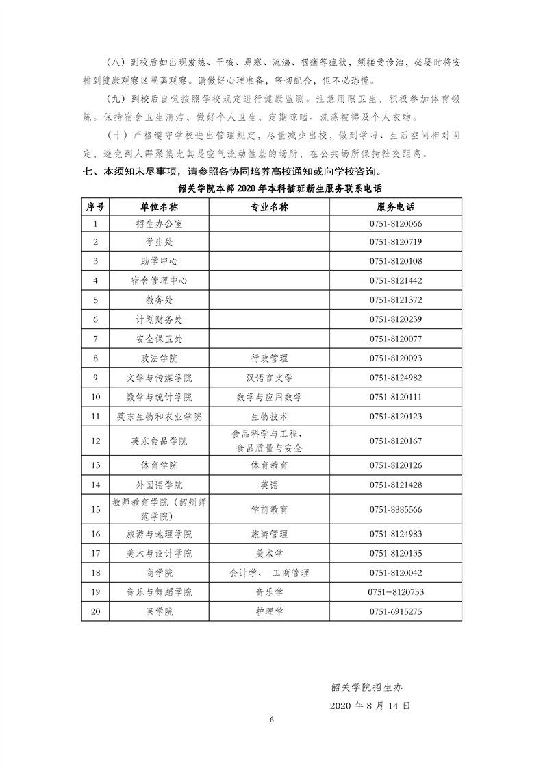 韶关学院2020年本科插班和三二分段专升本新生入学须知