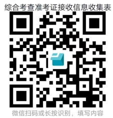 三、准考证接收:凡缴费成功考生,须在2024年3月27日之前,用本人微信扫描下列二维码,如实、准确填写本人接收我校发送准考证的电子邮箱等信息,我校将于2024年3月31日发送准考证,若所填写信息错误,导致无法发送准考证,后果自负。