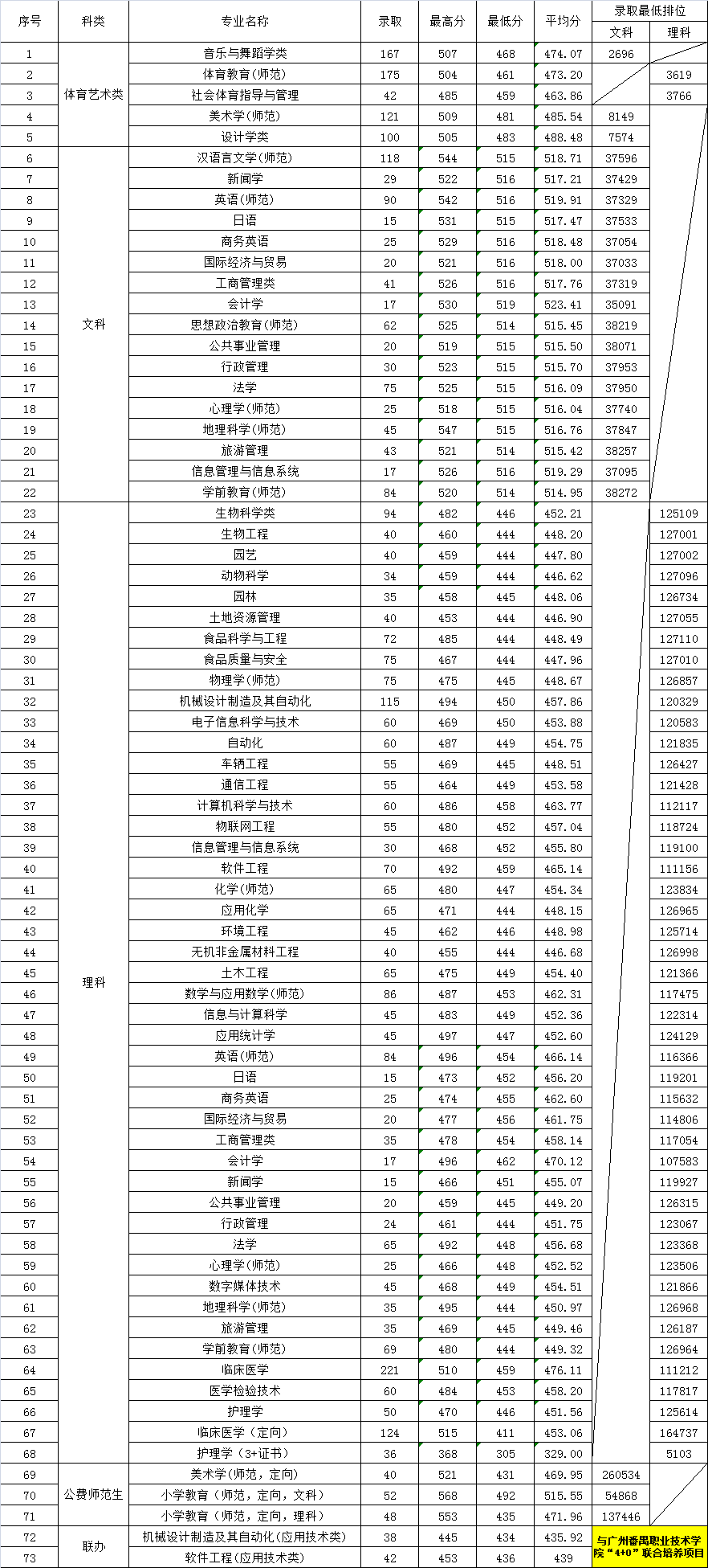 韶关学院2018年广东省各专业录取分数统计表(本科)