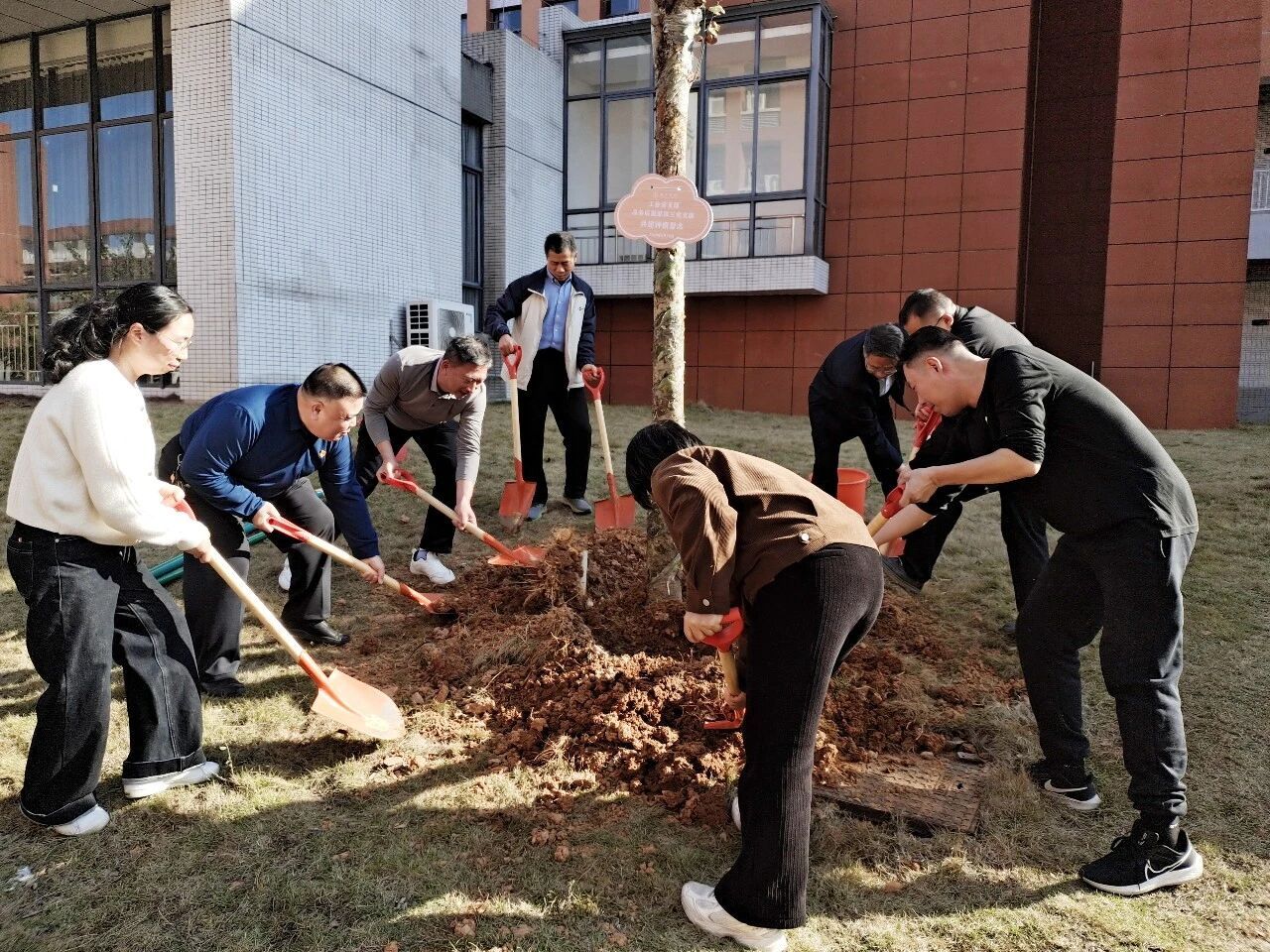活动现场,党员们热情高涨、干劲十足,分工协作开展挖坑扶苗、培土浇水等工作,现场一派热火朝天的劳动景象。经过共同努力,活动栽植了宫粉紫荆作为党支部共建纪念树,为春日校园增添了一抹盎然绿意。此次共建活动是深化基层党组织交流合作、推动党建与业务深度融合的生动实践,进一步增强了党员的生态文明意识和团队协作精神,展现了党员干部投身绿美校园建设的良好风采。