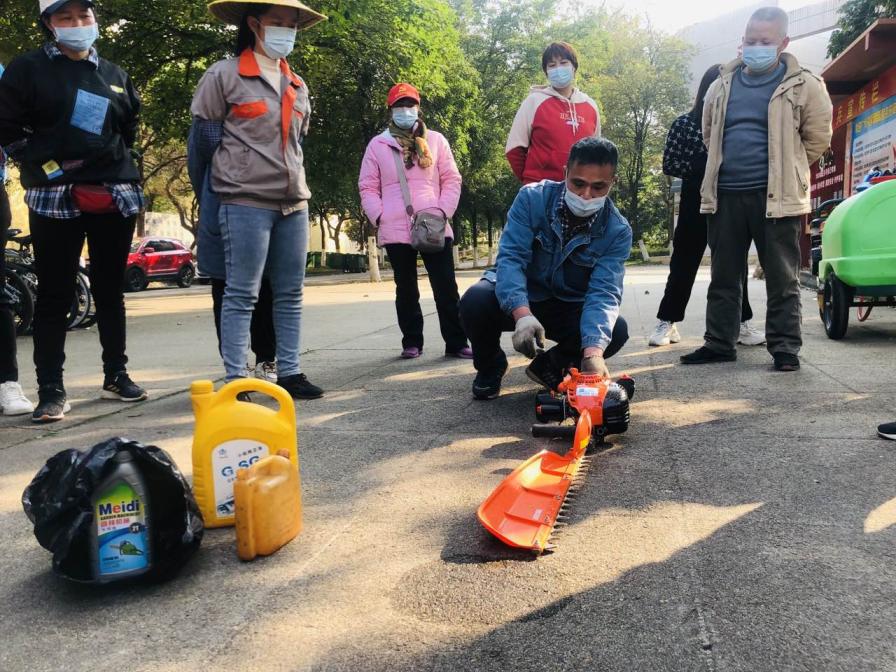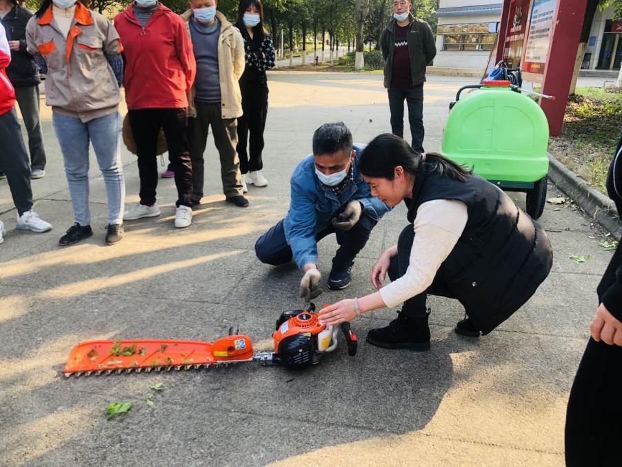 为增强员工的安全意识,进一步规范园林绿化机械的使用操作,深入推进规范化、标准化、精细化、现代化后勤服务保障体系建设,近日,校园物业管理中心组织开展园林绿化机械操作培训活动。