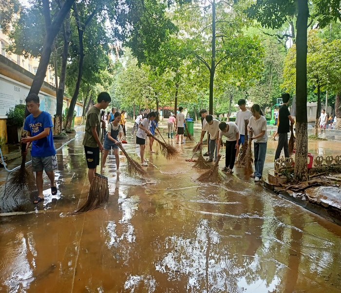 两手抓、两不误,统筹协调疫情防控不断档、防汛救灾不延误。后勤处秉持“两手抓、两不误”工作思路,以“预防为主、突出重点、排除隐患”为目标,后勤处工作人员连续多日坚持在岗值守,认真做好校园校道、隧道、广场和防排水设施的全面清淤、疏通和维护,对垃圾、杂草和倒伏树木进行清除,并对教学、行政和师生公寓等场所的垃圾桶、厕所和下水道进行全面消杀,为广大师生的健康和安全提供保障服务。