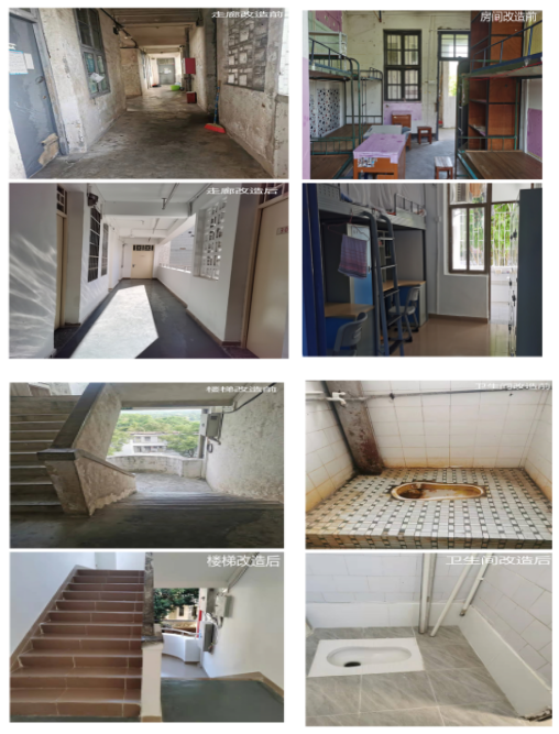 学校领导深入基层,下沉一线,通过实地调研、座谈会、新媒体平台等渠道广泛征集师生亟需解决的问题。在调研过程中,学校领导了解到学校学生宿舍住宿环境问题是师生最关心,最迫切想改善的。其中思源区第20、23栋和紫竹苑A、B栋学生宿舍这四栋学生宿舍基本上都是90年代左右建设的,里面很多墙面抹灰脱落,地面凹凸不平,有些阳台甚至长了青苔,宿舍内的设施已经破旧,管道漏水现象时有发生,严重影响了学生的学习生活。