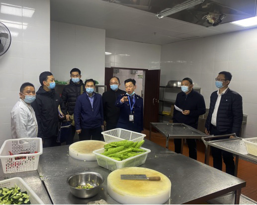 吴善添一行八人先后来到学校食堂和生活服务场所检查。在学校食堂详细检查了疫情防控工作的落实情况和食品卫生、餐具消毒、登记台账、食品留样、采购索证索票、人员健康证明等管理制度的落实情况以及食品原料是否变质过期、食品储存与加工操作是否规范、就餐场所卫生状况是否达标等情况。检查组重点检查了学校生活服务场所是否按照合同约定的经营范围经营,是否具备与符合食品安全标准的场所、设施设备、工艺流程、食品安全专业技术及管理人员,是否严格落实原材料索证索票、进货查验、用水卫生、食品留样、从业人员健康管理等方面制度要求,是否存在环境卫生脏乱差的情况。