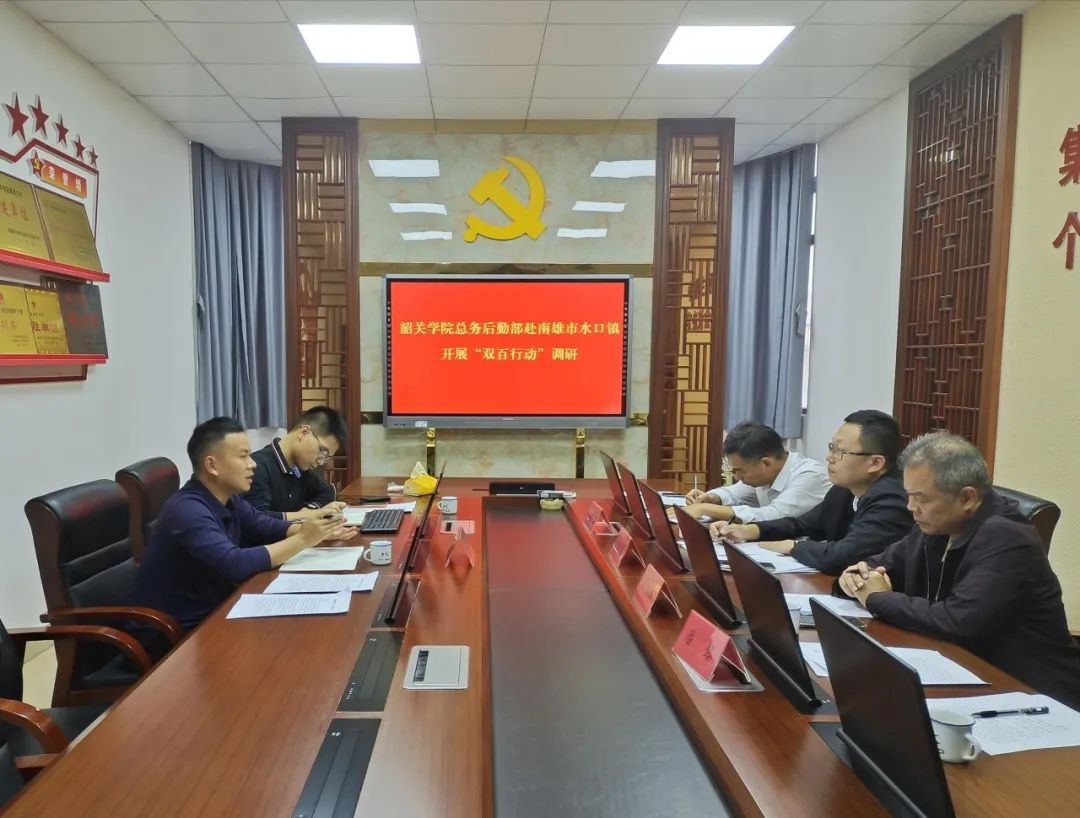 为进一步落实学校“双百行动”工作部署,推进工作取得新成效,近日,总务后勤部副部长李剑波带队赴南雄市水口镇开展工作调研,总务后勤部校园物业管理中心相关负责人参加本次调研活动。