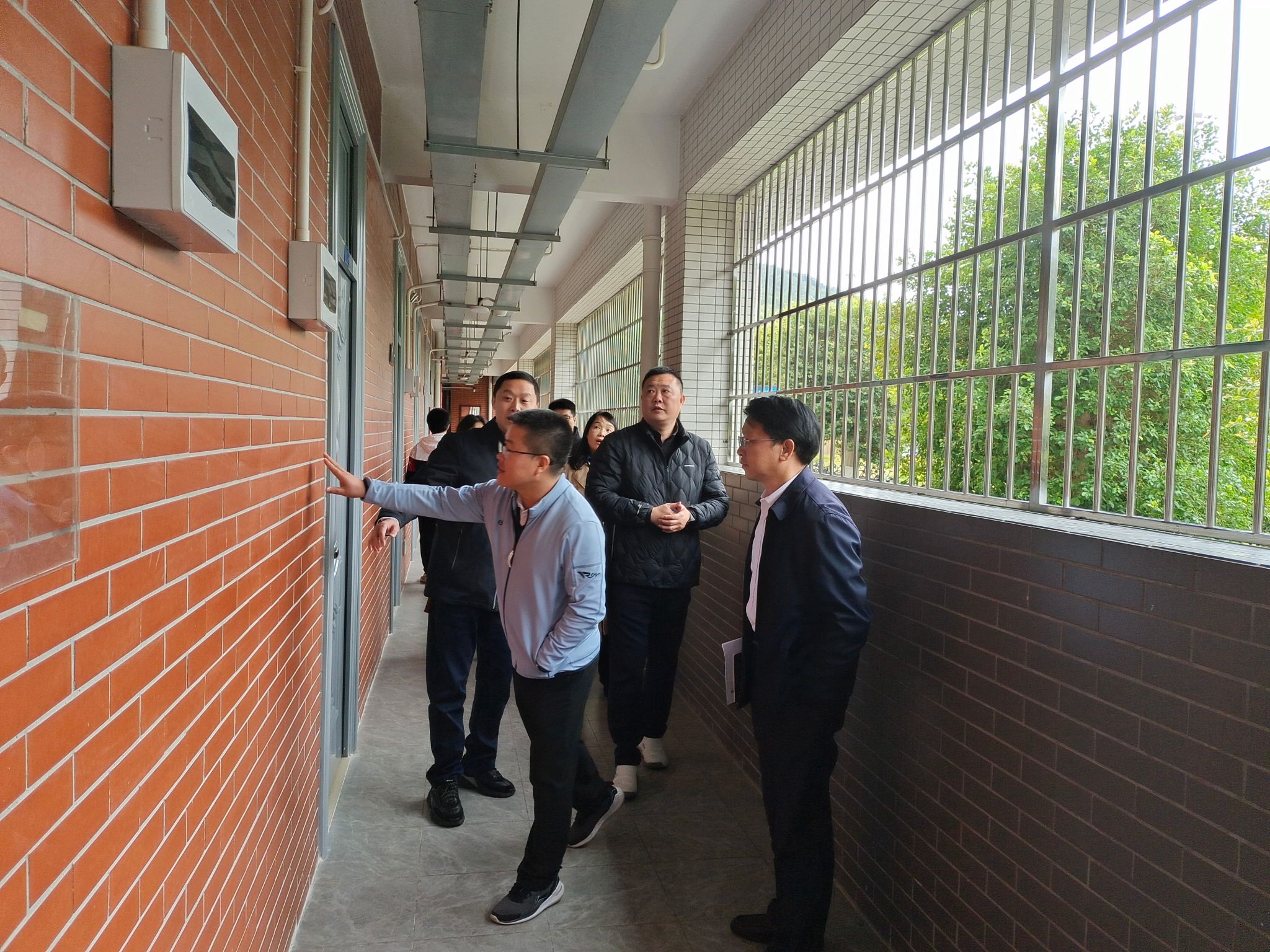 近日,广东省教育厅基建财务处一级主任科员窦体阳一行来校调研学生宿舍建设项目情况,我校党委副书记吴善添接待了窦体阳一行。