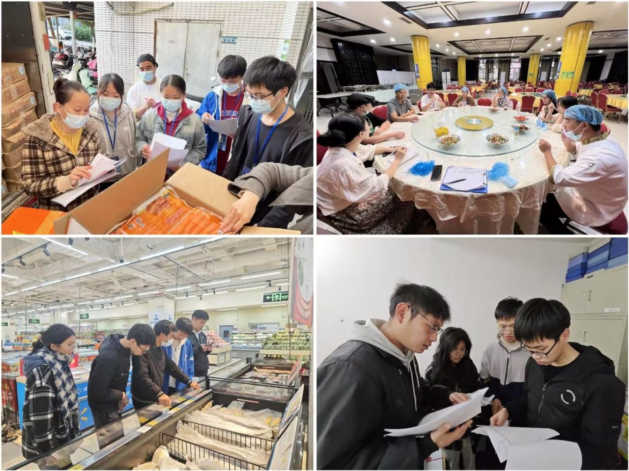 学生食品安全监督员在食品安全管理人员的带领下,聚焦食堂生产环节检查,菜式品鉴、物资验收、市场询价等关键环节,深入工作一线,多措并举开展监督检查工作。一是深入学校各食堂内部后厨加工区域,包括烹饪间、备餐间、烧腊间、点心加工间、洗消间、物资仓库等重点区域,认真检查仓库储存管理、环境卫生、烹饪加工、餐具清洗消毒等环节;二是开展食堂物资质量验收,查阅了各类伙食物资采购索证索票资料及工作台账;三是对食堂部分出品菜式进行品鉴,就菜品口味、食材搭配等方面提出了意见与建议;四是开展食堂伙食物资市场询价,与饮食服务中心、监控科等相关人员一同前往韶关市农贸市场、商场超市等场所,对有关食材价格、质量、规格等方面进行实地询价调研与定价。