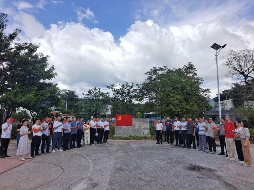 为隆重庆祝中国共产党成立104周年,深入贯彻落实习近平新时代中国特色社会主义思想,6月27日,总务后勤部党委组织党员前往韶关市武江区重阳镇,开展了一场别开生面的“铭记初心‘迎七一’ 砥砺奋进担使命”主题党日活动。通过实地参观、党课学习、交流探讨等形式,引导党员坚定理想信念、强化使命担当,助力“双百行动”,为后勤事业高质量发展和乡村振兴贡献力量。