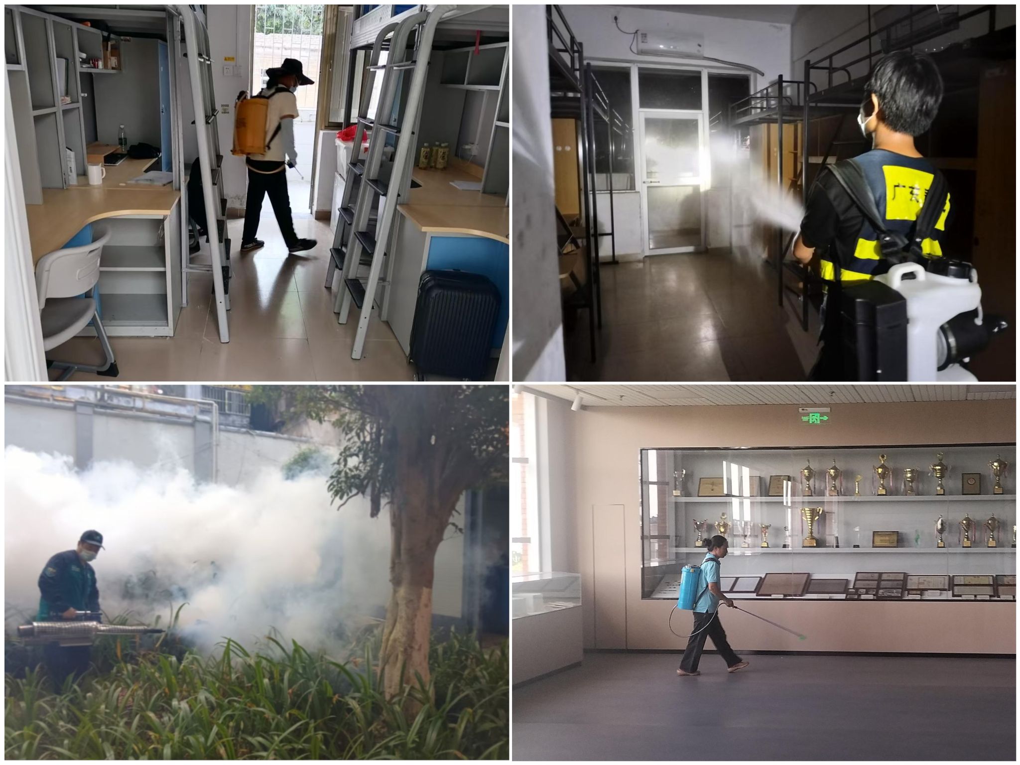 此外,在学生宿舍、公共教室等人员密集场所,对天花板、门窗、地面及各类设施进行了彻底清洁和消毒,上课讲台、课室开关等高频接触部位做了细致擦拭与维护,全力保障师生学习与生活环境的安全卫生。垃圾清理工作也同步推进,实现分类收集、及时清运,确保校园整体环境整洁有序。