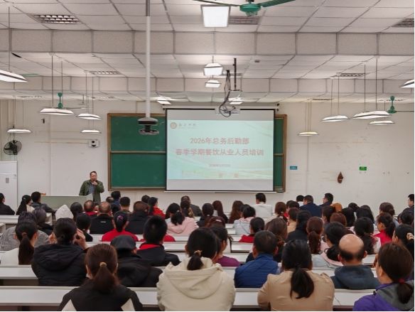 春启新程,食安为先。为切实强化校园餐饮从业人员食品安全意识,规范操作流程,压实岗位责任,保障全体师生饮食安全与身体健康,筑牢校园食品安全防线,2026年2月25日,总务后勤部组织开展2026年春季学期餐饮从业人员专项培训,全体餐饮从业人员全员参与、全程投入,以专业素养开启新学期服务新篇章。
