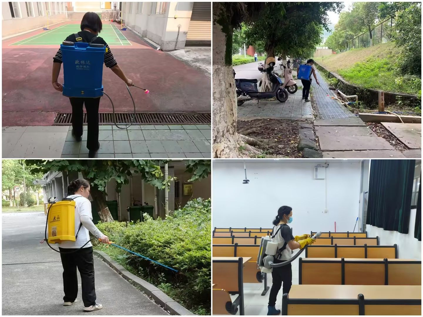 三、四月份是广东地区的回南天,气温回升、气候潮湿,雨水增多,极易成为蚊虫滋生的高发时段。为了更好地迎来蚊虫多发的春季,总务后勤部高度重视校园蚊虫防治,提前制定专项工作方案,明确消杀范围、时间节点、作业标准和安全规范,组织专业消杀工作人员,配备合规消杀药剂、喷雾设备等工具,全力开展集中消杀作业。