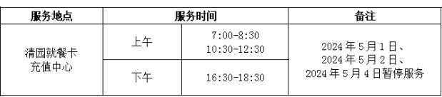 (三)韶乐园校区就餐卡充值时间:2024年5月3日、2024年5月5日