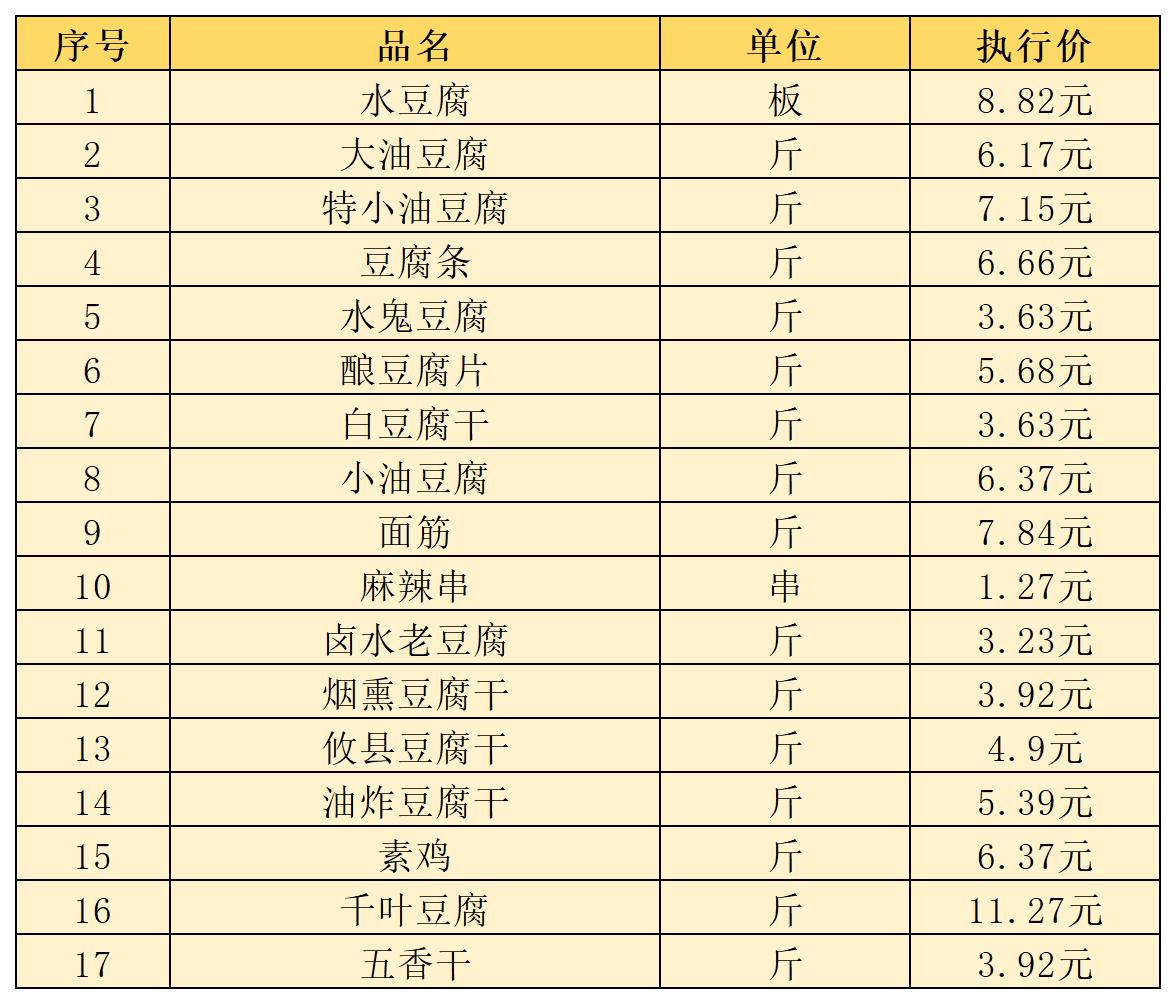 (六)豆制品类5月1日-5月10日定价