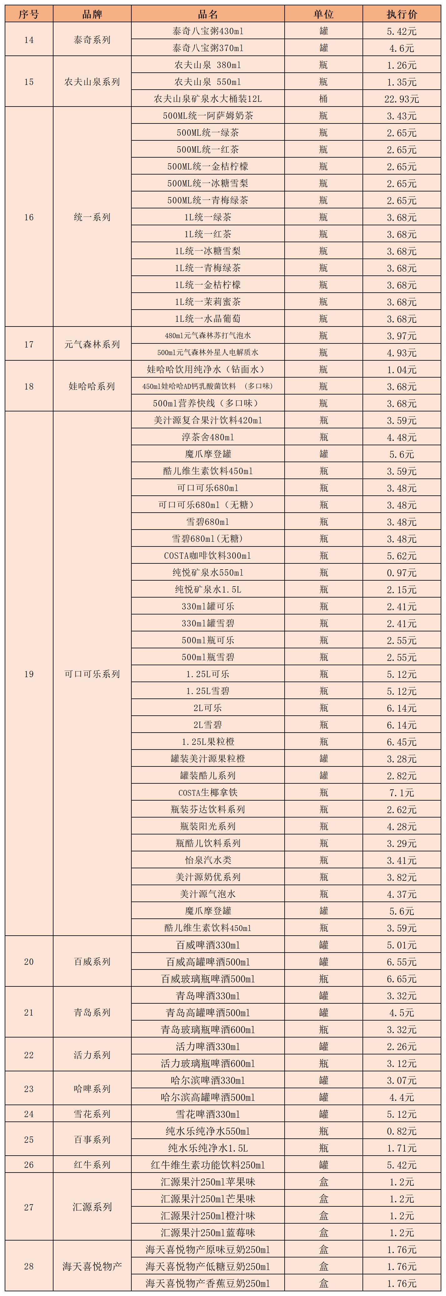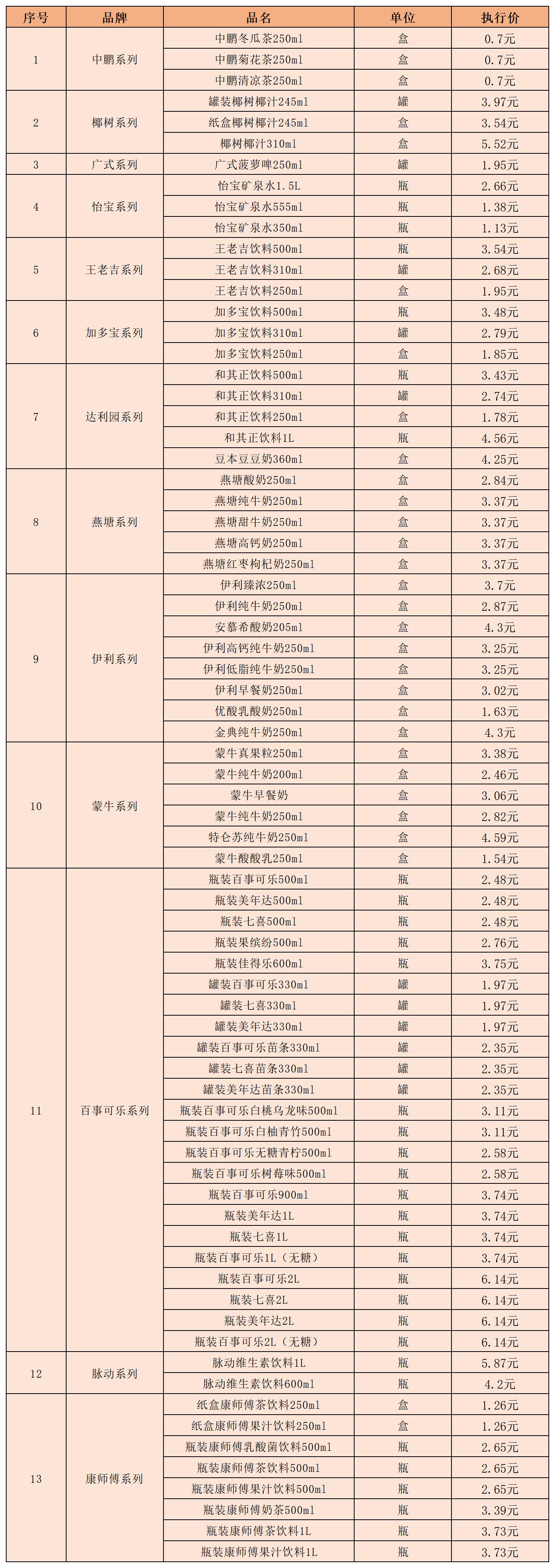 (九)饮料类5月1日-5月10日定价