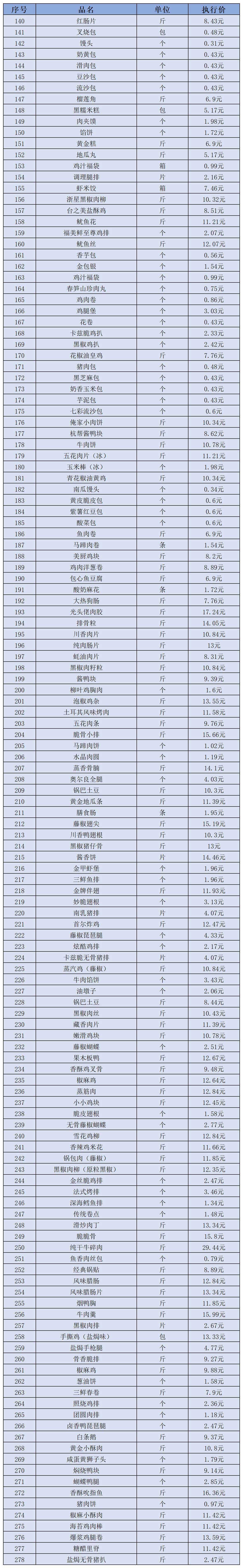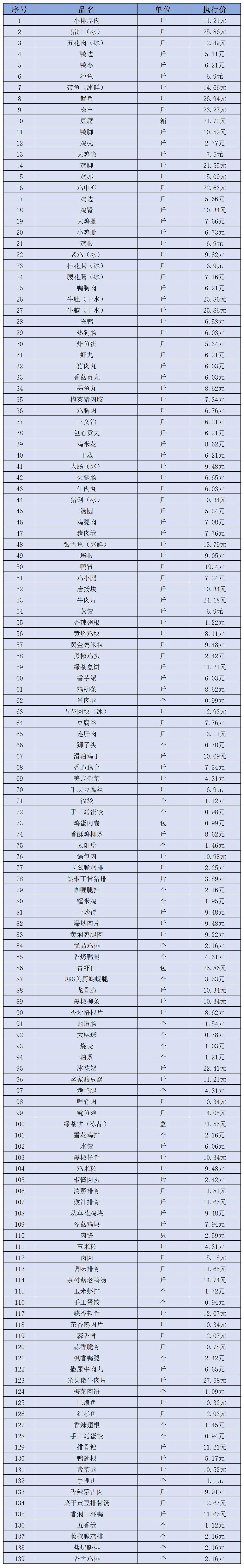 (二)冻品、半成品类5月1日-5月10日定价