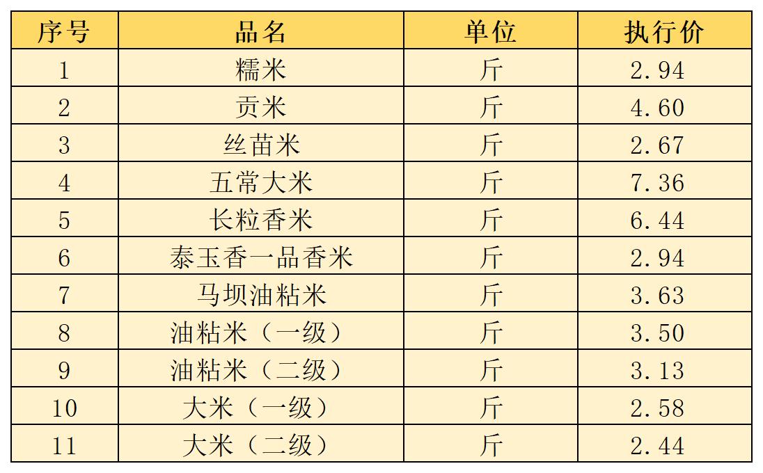 (十一)大米类3月1日-5月31日定价