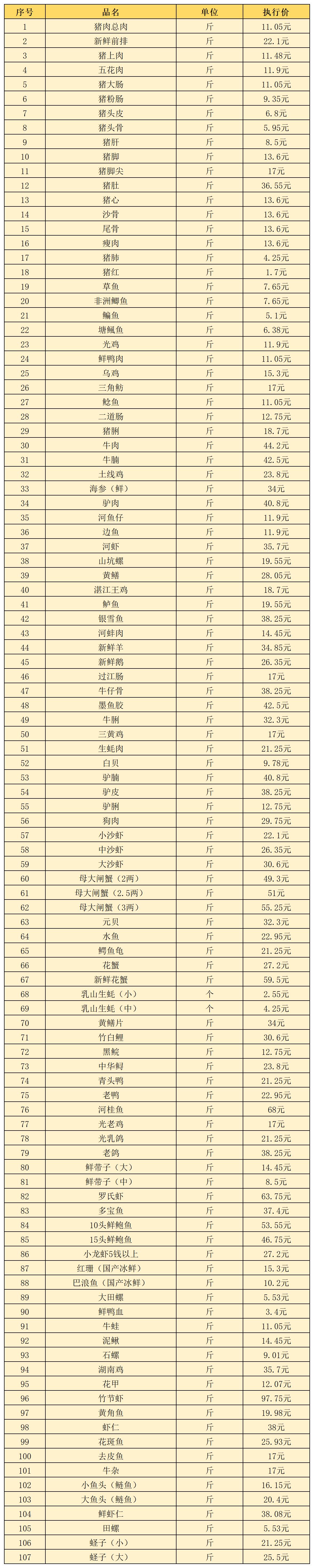 (三)鲜肉类5月1日-5月10日定价