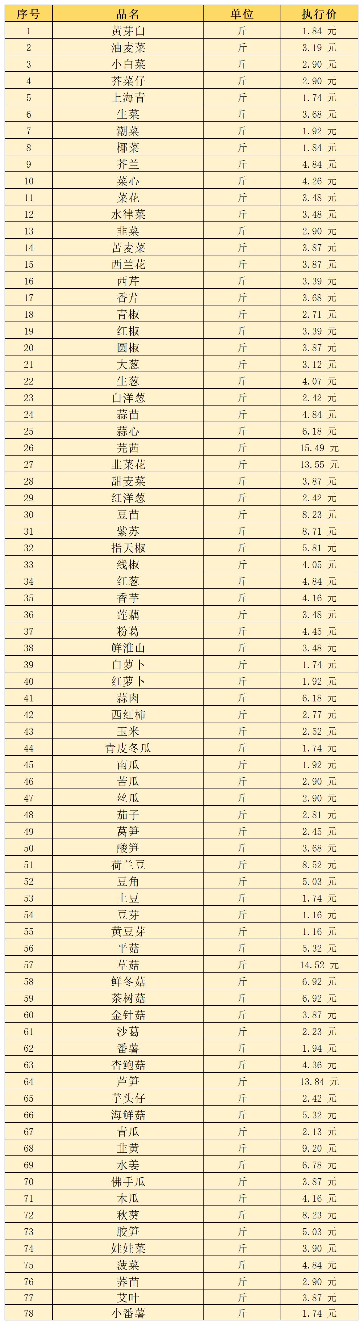 (一)蔬菜类5月1日-5月10日定价