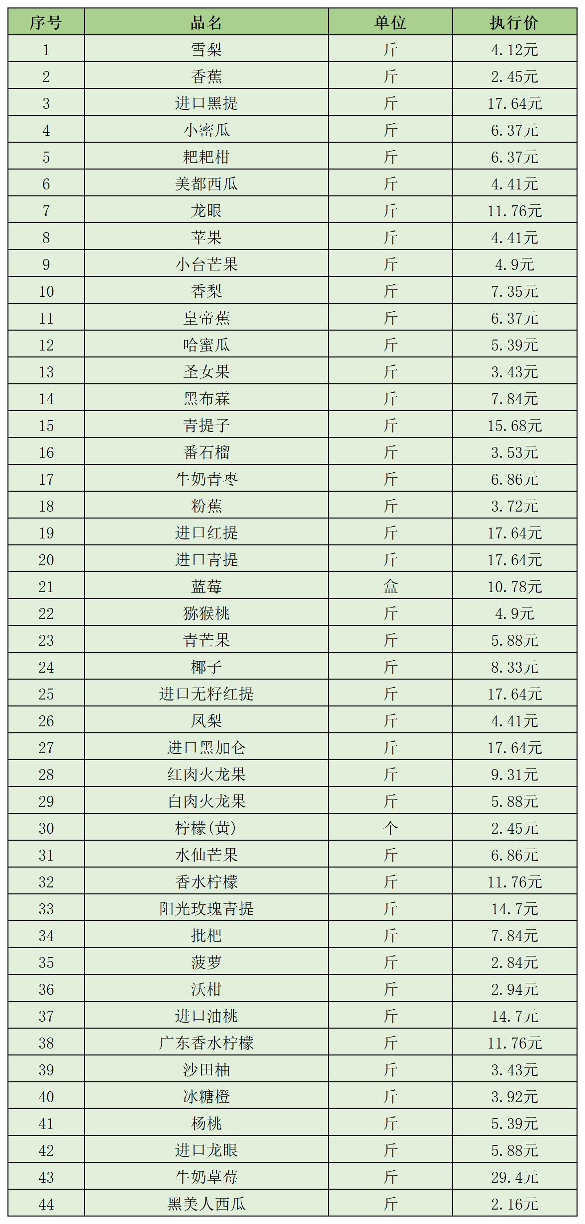 (十)水果类5月1日-5月10日定价