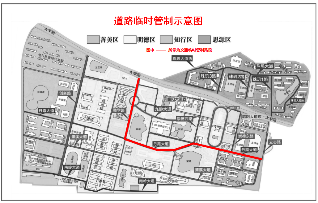 为配合韶关市政府投资建设项目代建管理局组织施工单位进行施工,拟于2023年3月4日5:00至3月5日1:00,对学校老西门→勤学路南向→丹霞大道东向→立志路北向的道路进行临时管制(具体路段详见附图)。届时请各师生注意避让施工车辆通行,听从现场交通指挥人员的管理。