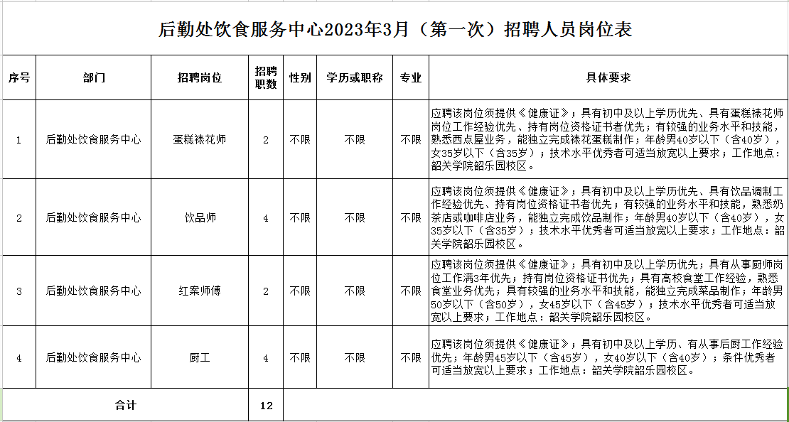 (一)招聘工作的有关事宜及通知,请浏览韶关学院后勤处网页。招聘工作咨询电话:0751-8120517,联系人:李老师。