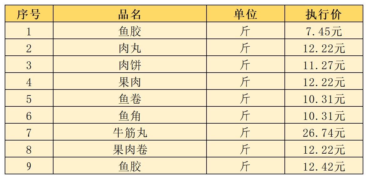 (五)鲜肉丸类12月11日-12月20日定价