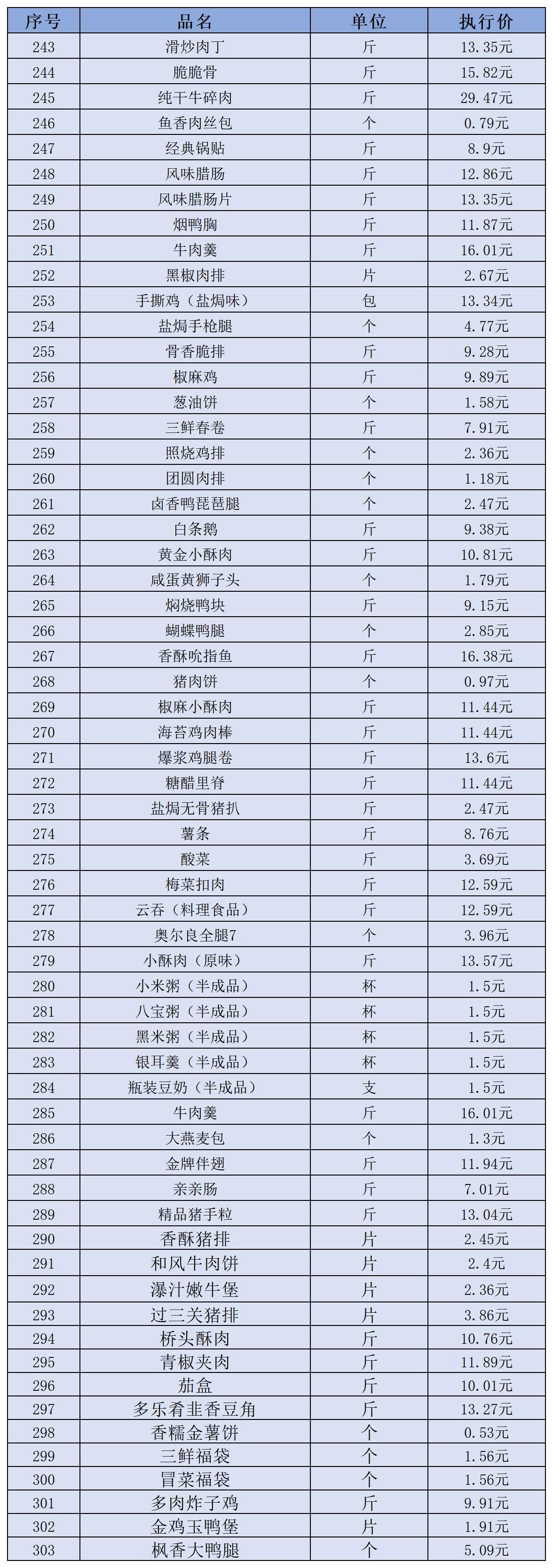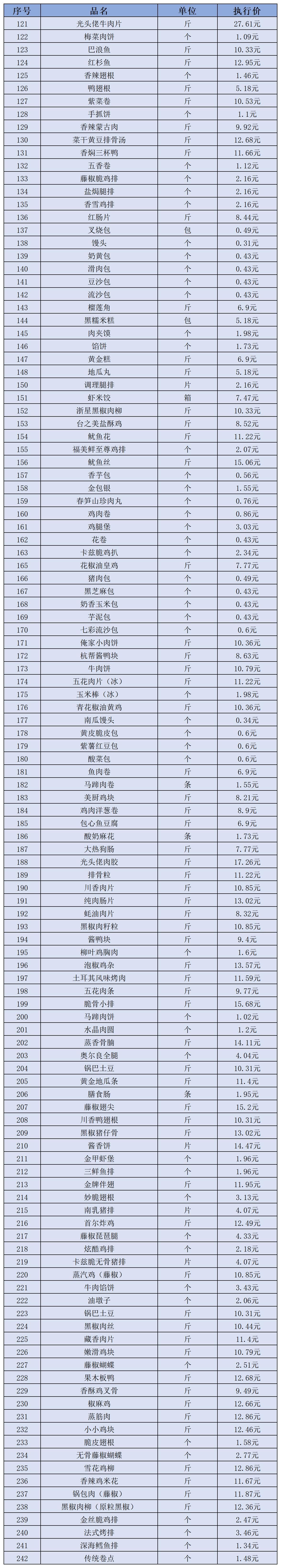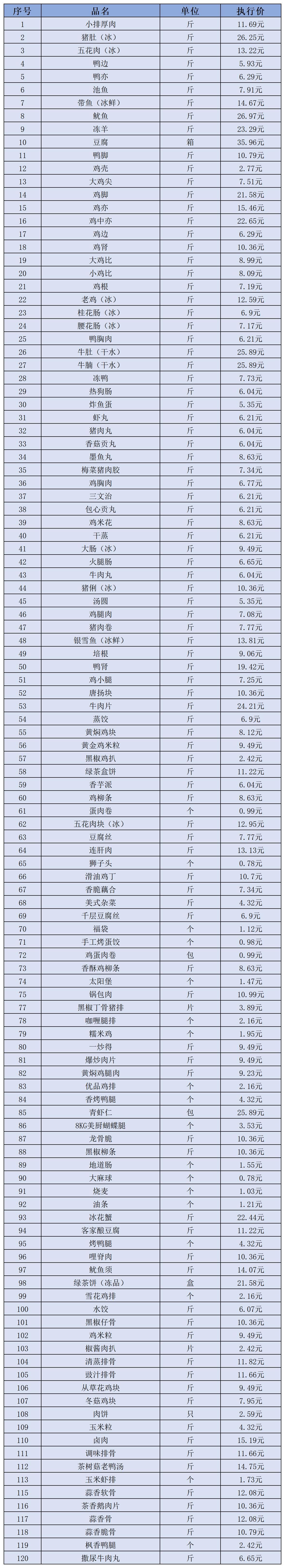 (二)冻品、半成品类12月11日-12月20日定价