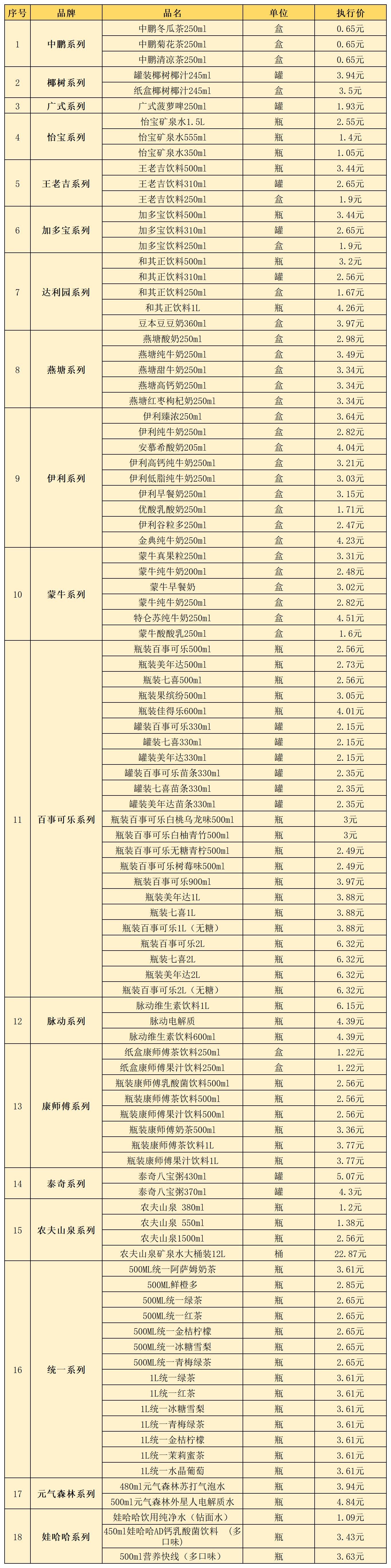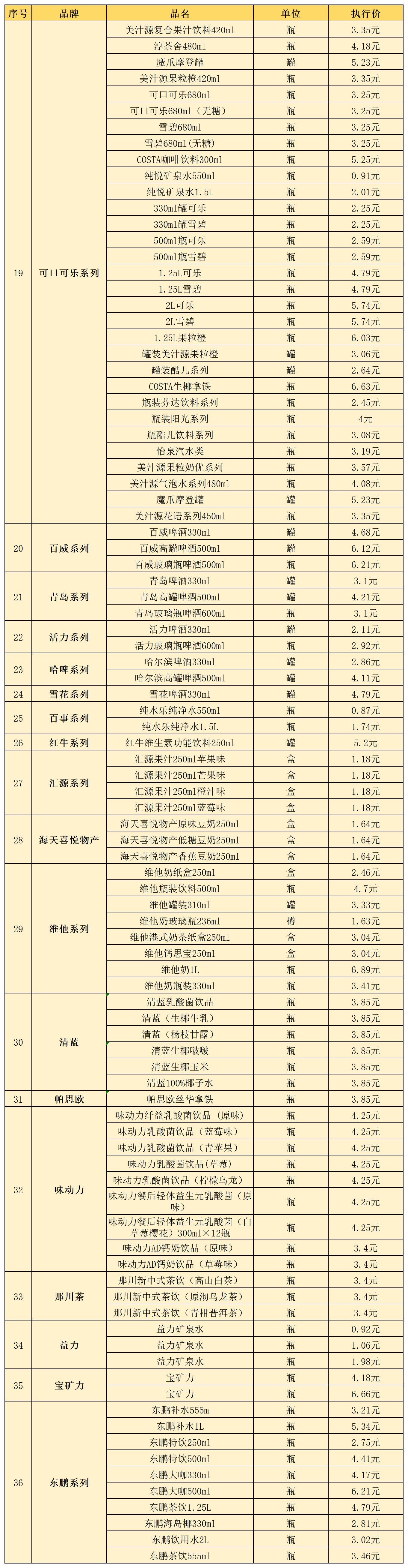 (九)饮料类12月11日-12月20日定价
