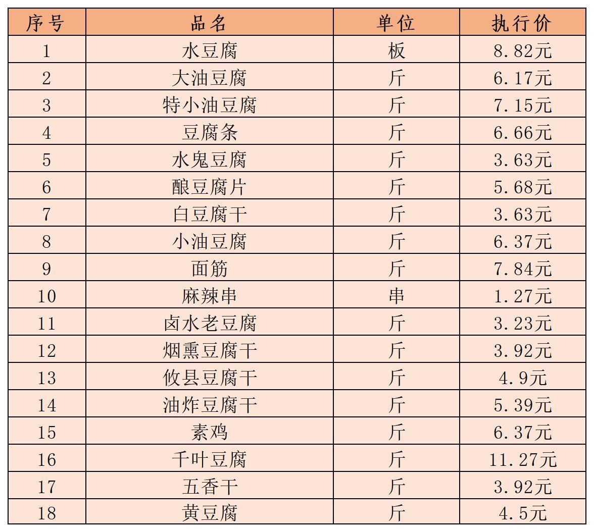 (六)豆制品类12月11日-12月20日定价