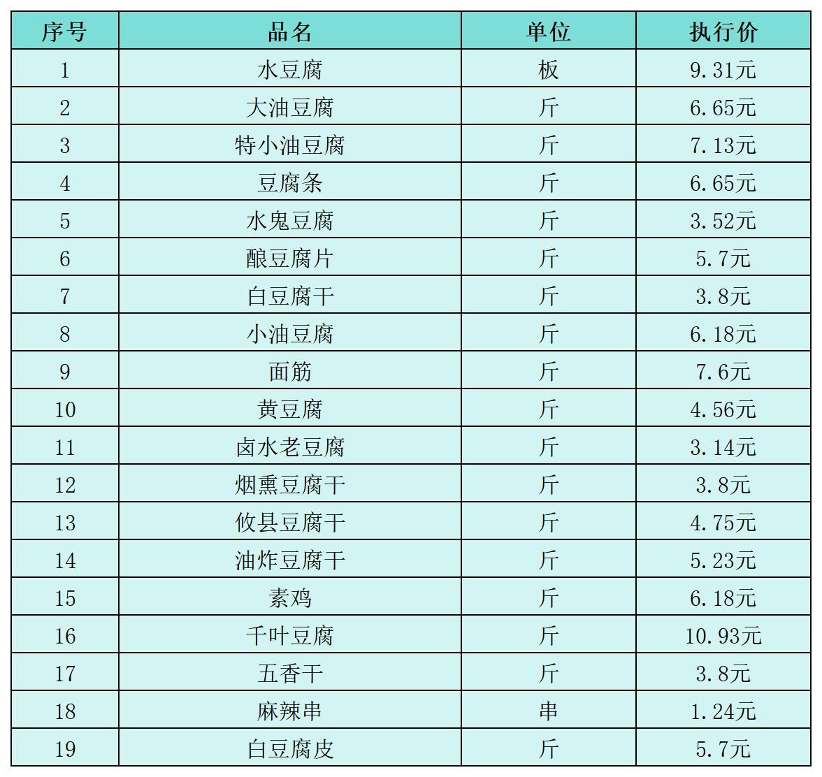 (五)豆制品类1月11日-1月20日定价