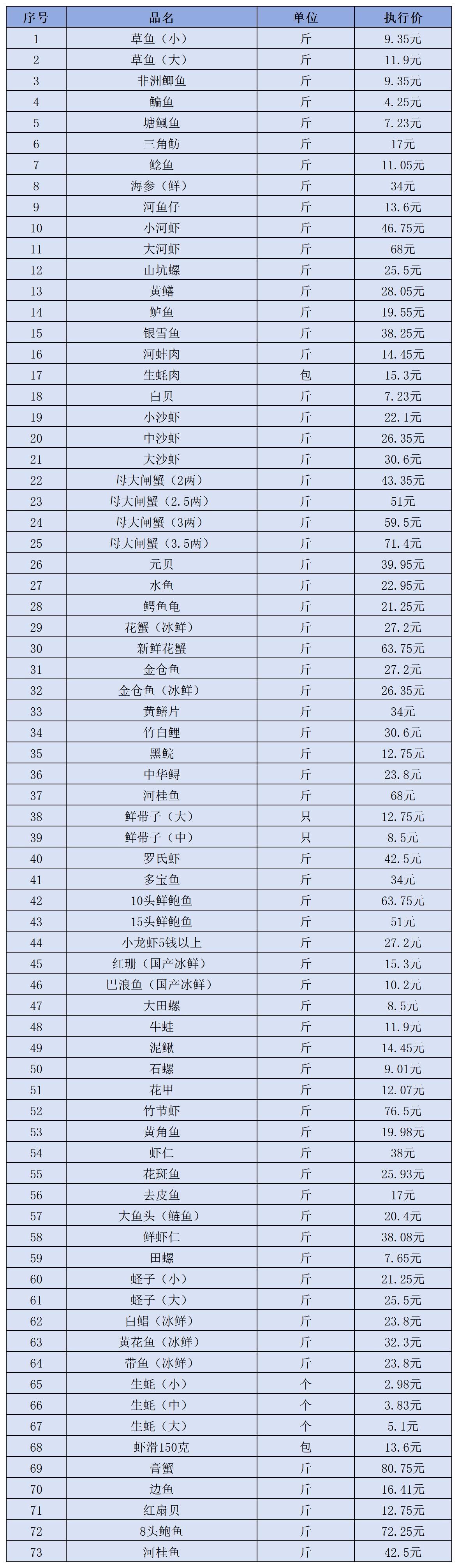 (四)水产类1月11日-1月20日定价
