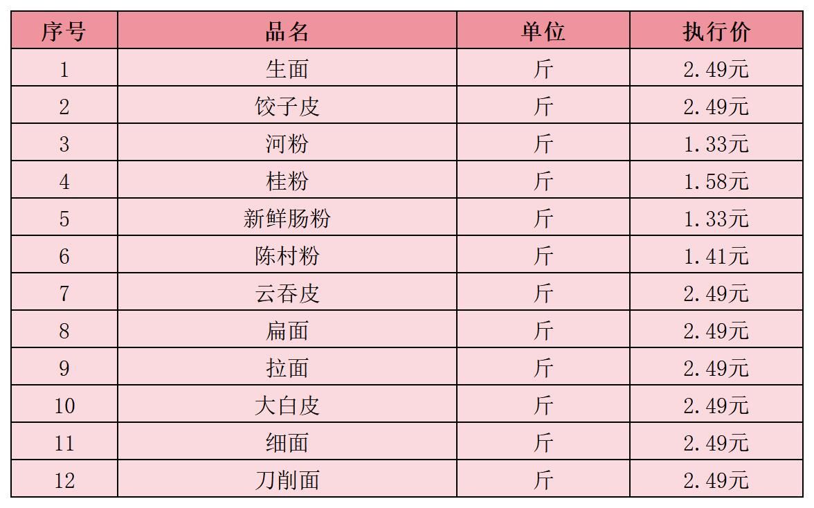 (六)河粉生面类1月11日-1月20日定价