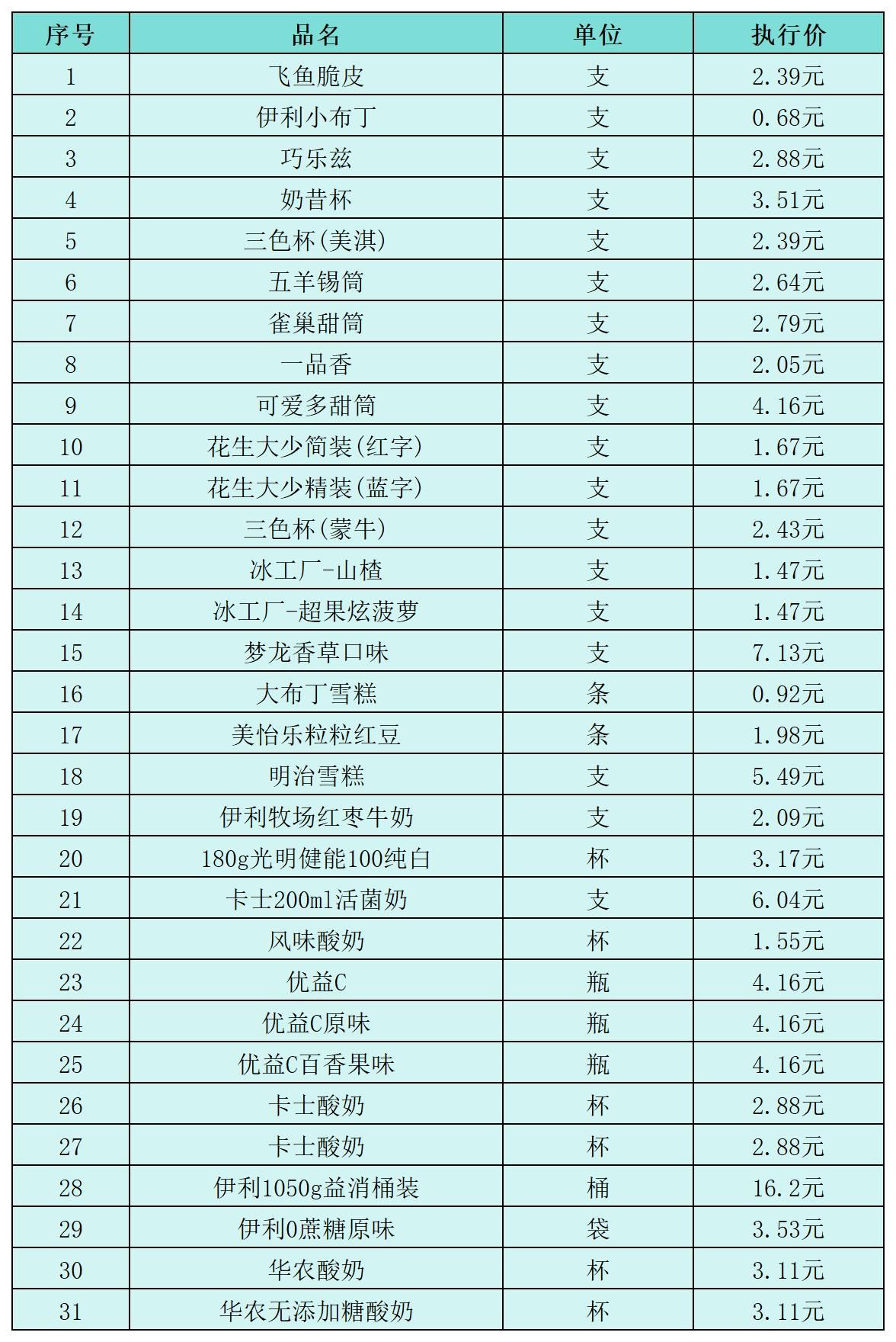(十一)雪糕及低温奶类2月1日-2月28日定价