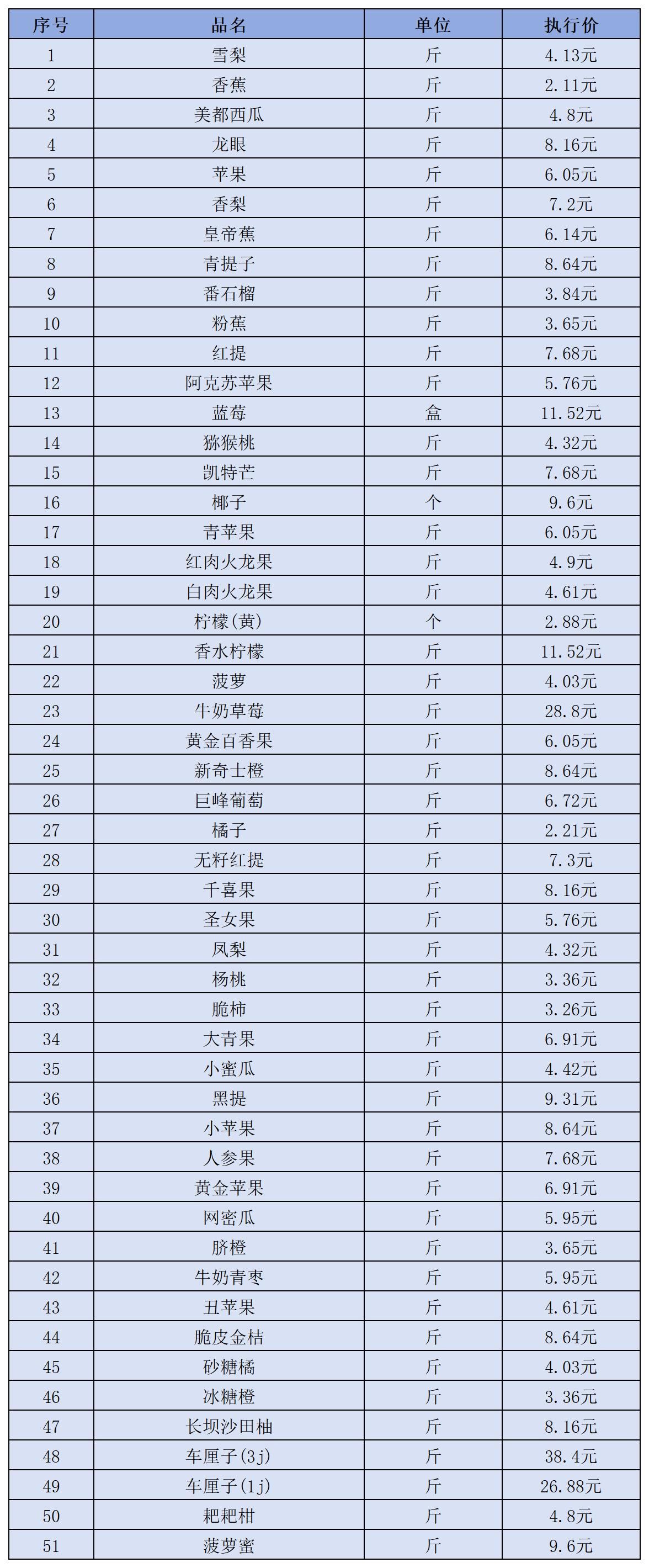(十三)水果类2月1日-2月28日定价