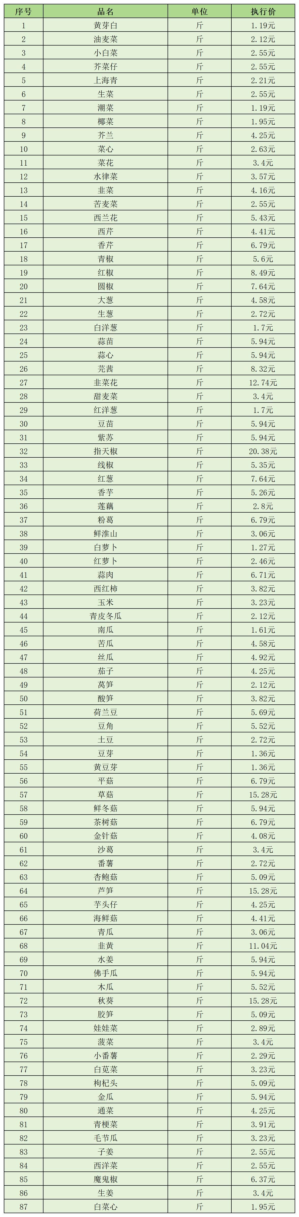 (一)蔬菜类2月1日-2月10日定价