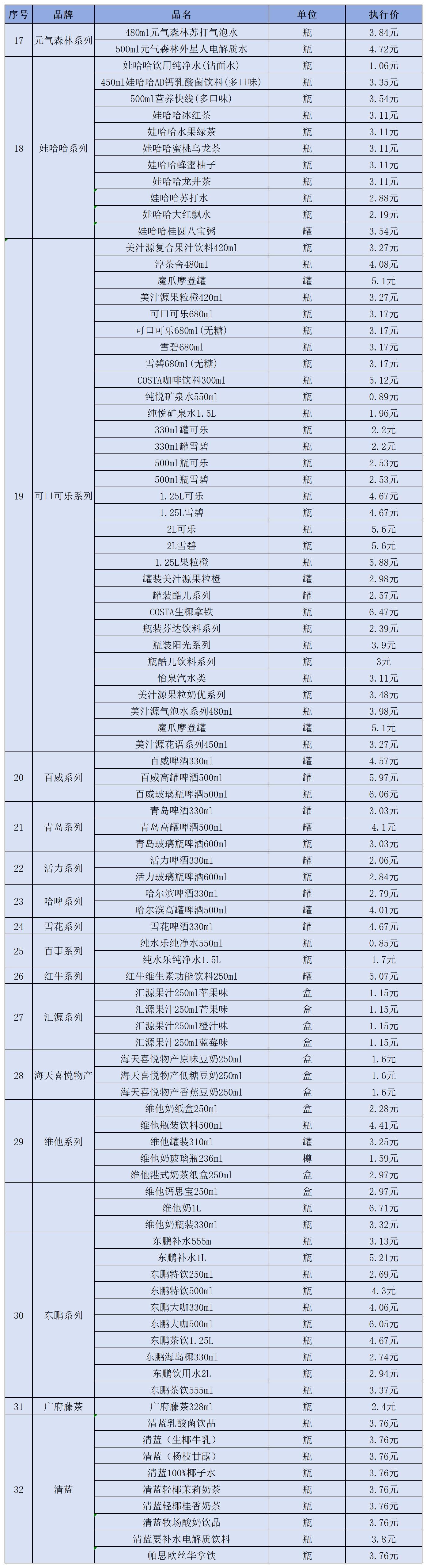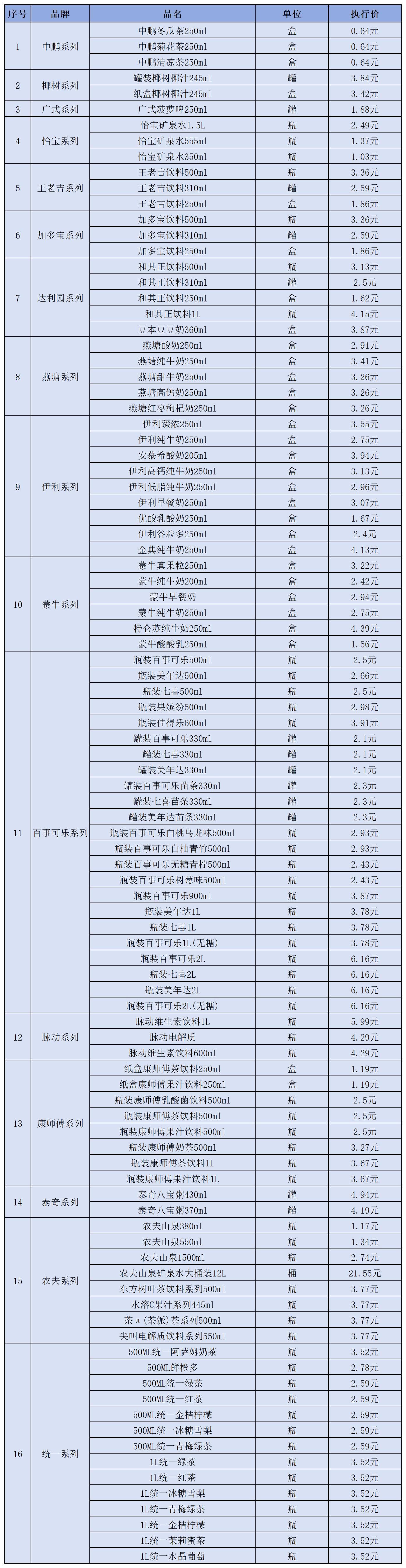 (十二)饮料类2月1日-2月28日定价