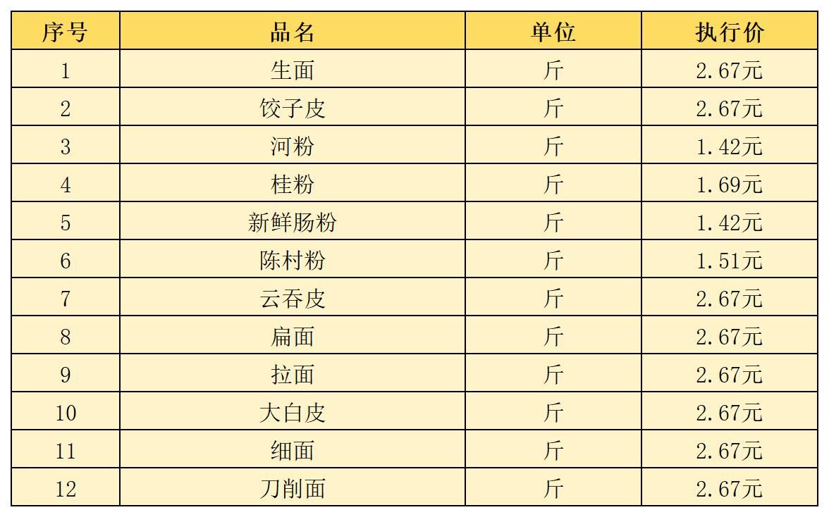 (六)河粉生面类2月1日-2月10日定价