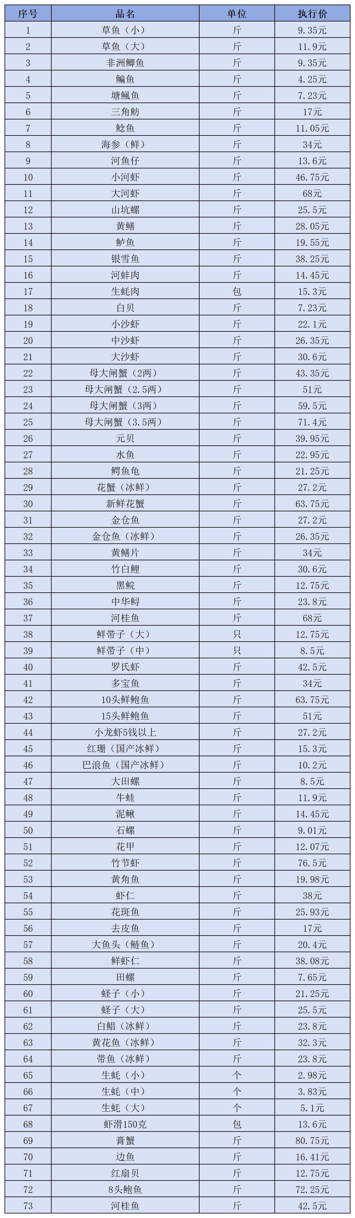 (四)水产类2月1日-2月10日定价