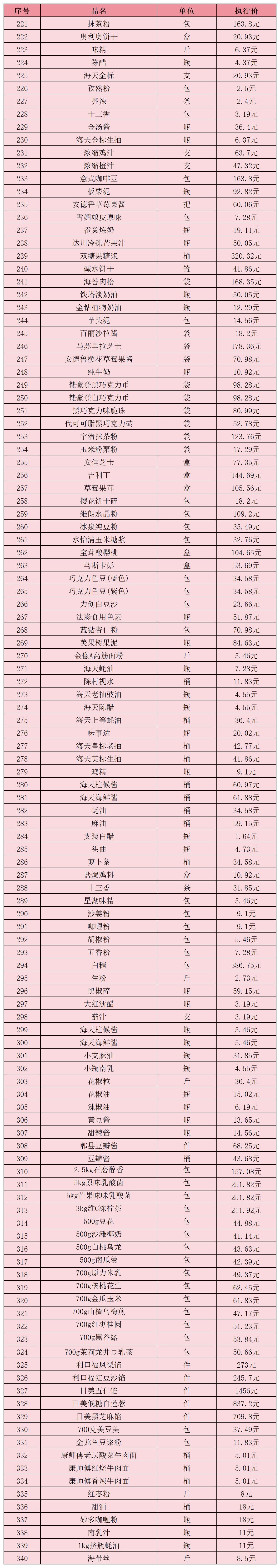 (十五)干货、调味品类2月1日-2月28日定价