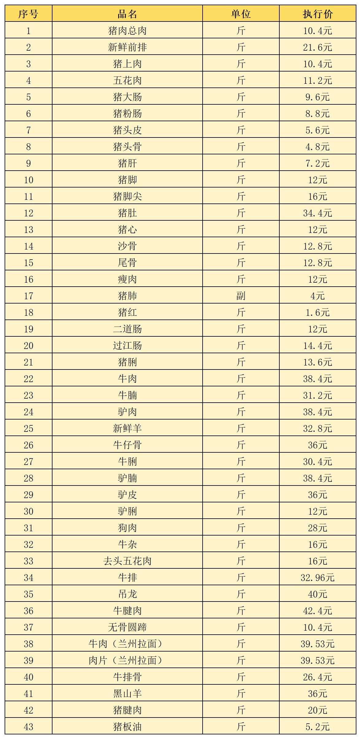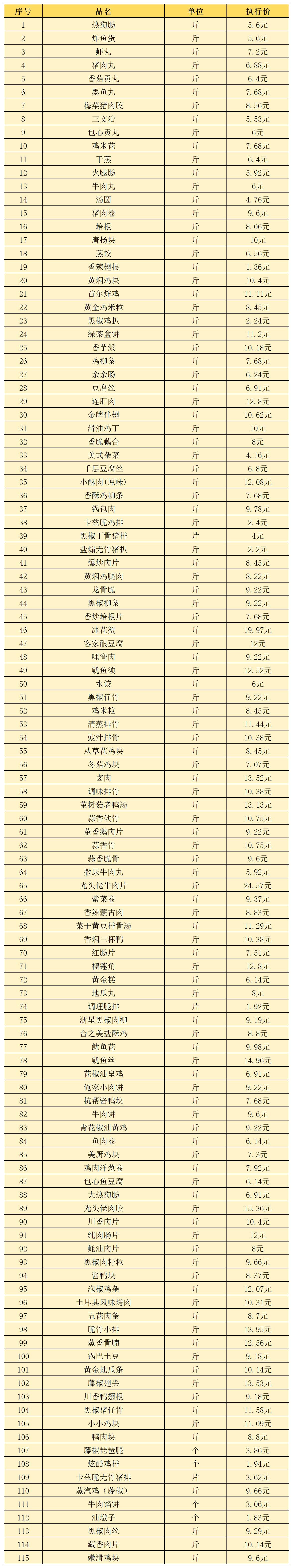 二、2026年2月份伙食物资定价公布