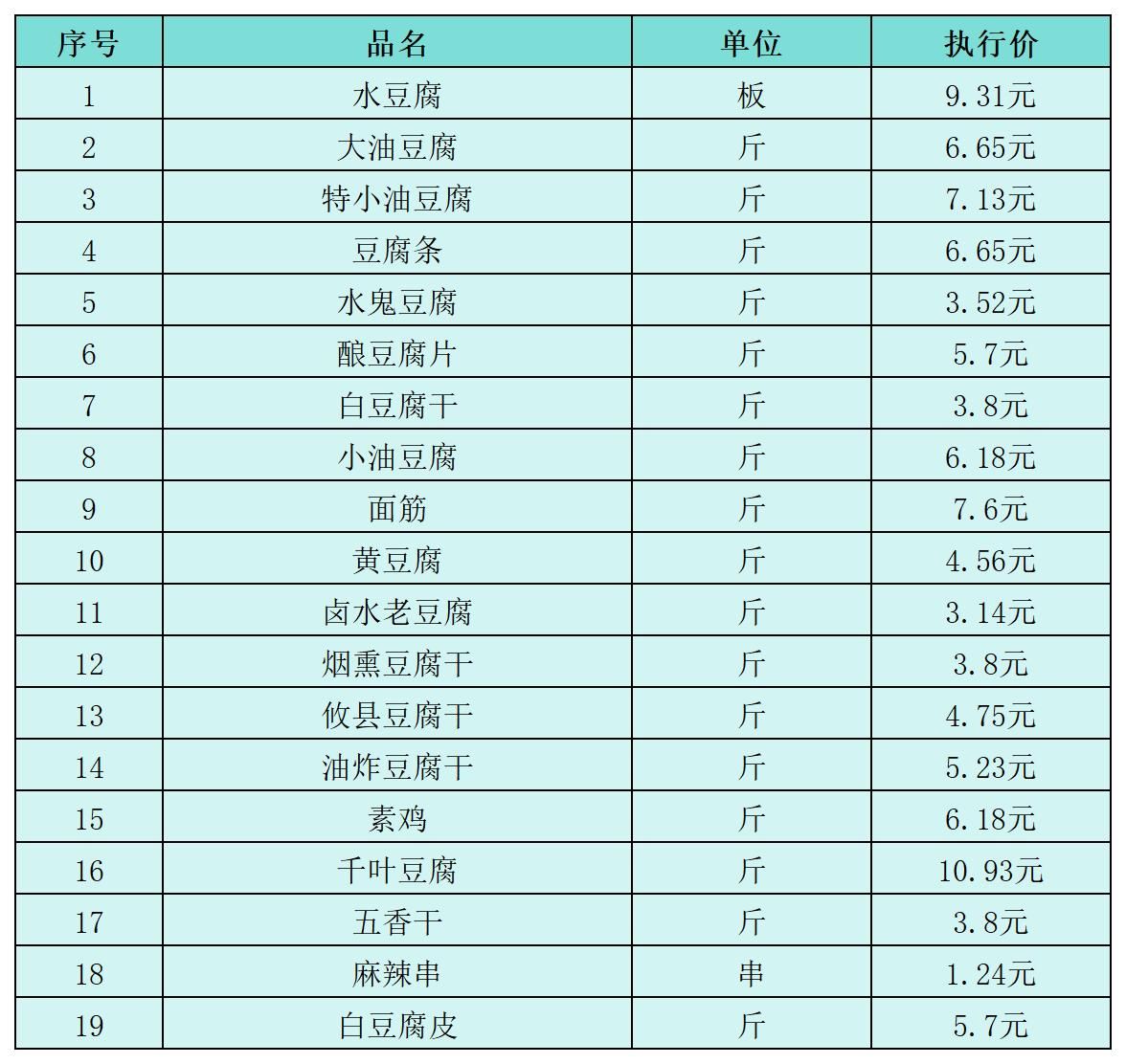 (五)豆制品类2月1日-2月10日定价