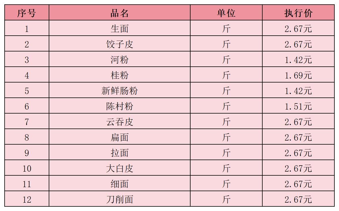 一、2026年2月份伙食物资定价公布